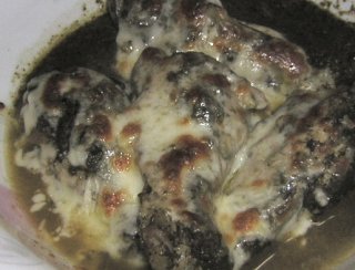 い煮込んで、味を染み込ませ、軟骨がちょうどコリコリと食べられるように下ごしらえしてから、チーズとスープをかけて焼き上げています。 軟骨は炊きすぎると、くにゃくにゃになるので、30分 がポイントです。 |