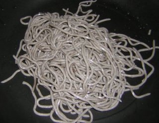 食べよう。 冷蔵庫にあっった、賞味期限をかなり過ぎた蕎麦、危険なので、 流水でよく洗ってヌメリを取ったうえで、徹底的に 炒める。(殺菌する)でも、腐敗によって出来た毒素は 消えないので、この方法は万全ではなく、大きなリスクを孕んでいる。 |