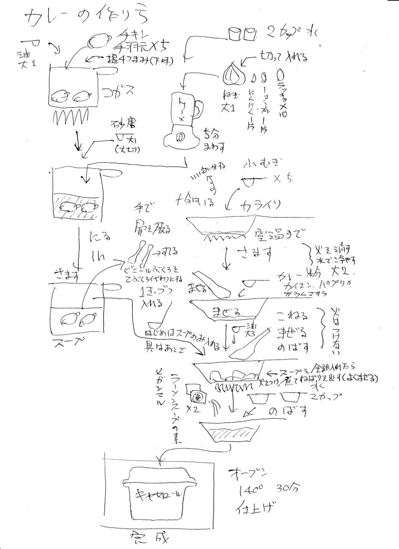 非常にオーソドックスな方法でチキンカレーを作ってみました。 鶏手羽元を煮込んで出汁を取り、冷めてからビニール袋を手袋 代わりにして、骨を取り出します。 市販のルーを使う必要はありません。ヒガシマルのラーメンスープの元で、グッとコクがでます。 小麦粉を乾煎りして、冷ましてから、香辛料をいれ、冷めたスープをお玉一杯ずつ加えながら混ぜ(未だ、粘りは出ません)全部混ぜたら、火をつけて、グルテンを活性化して、粘りを出します。 最後にキャセロールにいれてオーブンで熱処理しておくと、長持ち(滅菌処置?)します。 旨いですよ。 基本パターンなので、野菜は玉ねぎだけですが、季節によって、茄子、ニンジン、ピーマン等季節の野菜を入れれば、一層美味しいです。 ←1つ戻る ←←目次へ戻る |