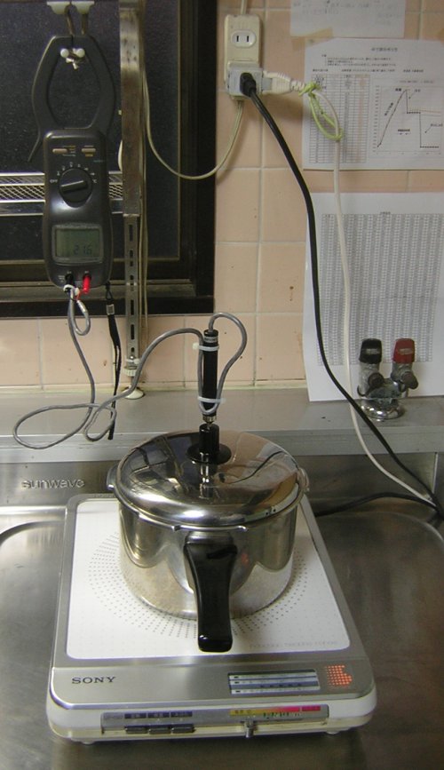 | 電磁調理器とステンレス製鍋、デジタル温度計を使用しています。 |