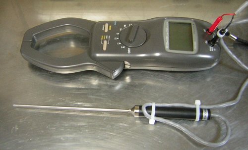 | 横川の2343デジタルクランプメータ(非常に古いものです)のオプションの温度計を使用しています。 |